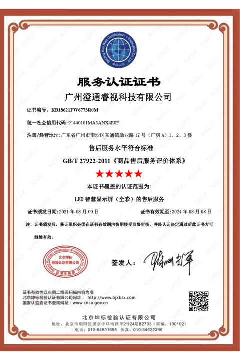 廣州澄通睿視科技有限公司FW服務認證中文證書