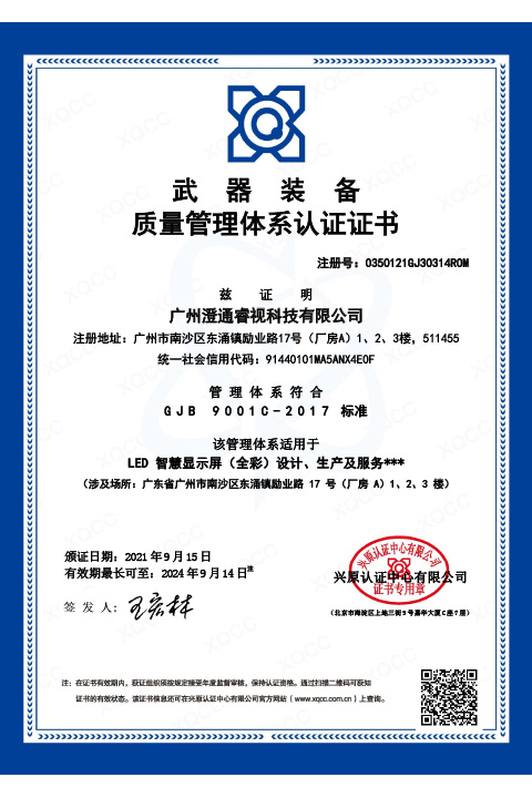 質量管理體系認證證書英文